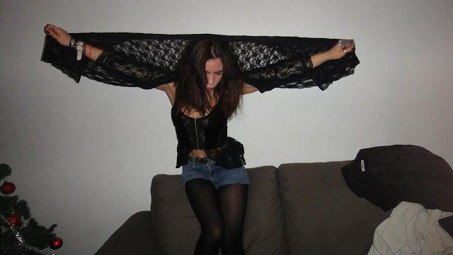picture: by KD, lacetop-hm/lacecaftan-lindex/shorts-old/belt-beyond retro/jewelry-varied